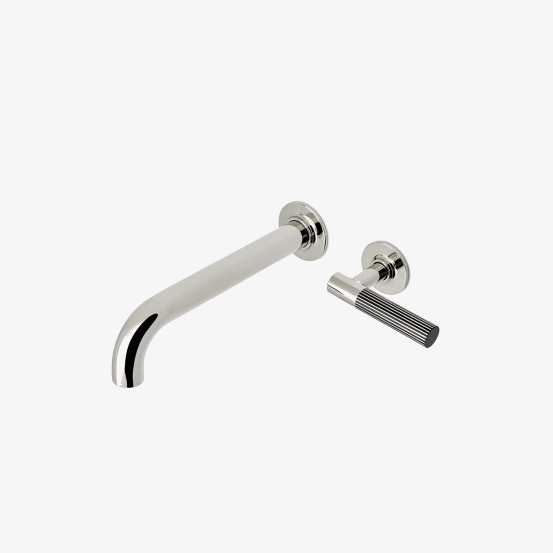 - Waterworks Bond Union Series Wall Mounted Lavatory Faucet with Guilloche Pinstripe Single Lever Handle