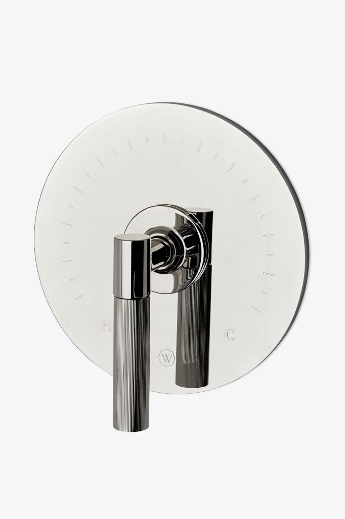 - Waterworks Bond Tandem Series Round Thermostatic Control Valve Trim with Guilloche Lines Lever Handle